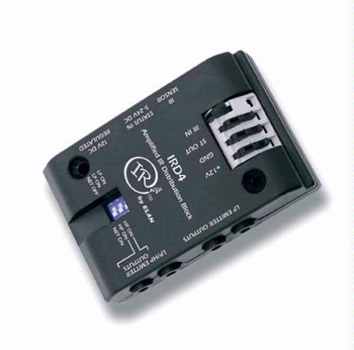 De IR Distribution Kit (250 euro) van Elan is daar een mooi voorbeeld van. In het doosje vinden we een IR-ontvanger (een ‘oog’), een IR-router (de verkeersagent) en vier IR-zendertjes (die signalen doorgeven aan onze apparaten).