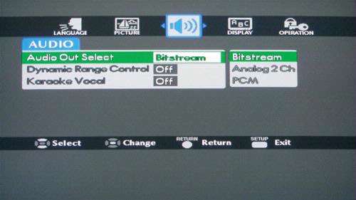 Kijk nu bij al je aangesloten toestellen na of de gebruikte uitgangen wel degelijk geactiveerd zijn én correct ingesteld staan! Zo moet je op dvd-spelers de digitale audio-uitgang meestal specifiek activeren. Selecteer Bitstream zodat de decodering door je av-receiver gebeurt.