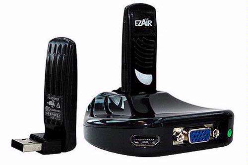 Wil je toch alle mogelijkheden van je computer naar het tv-scherm brengen, dan dringt zich dus een andere oplossing op. Deze draadloze usb-set van EZair bijvoorbeeld, die het mogelijk moet maken om in een handomdraai je laptop op het grote scherm aan te sluiten. Dat lijkt best aantrekkelijk: vanuit het comfort van je sofa mails lezen, video’s bekijken of op internet surfen.