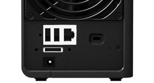 Dat laatste is overigens een eenvoudig klusje dat niet meer dan vijf minuutjes duurt. Je pikt gewoon een compatibele 3,5-inch SATA-drive op bij je lokale computerzaak, schroeft de behuizing open, schroeft de schijf in de uitsparing en verbindt eventueel