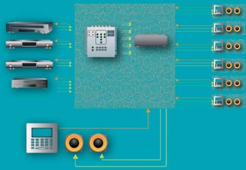 Dat kan gebeuren door een losse multizoneversterker – bijvoorbeeld eentje van 12 x 30 watt, goed om zes zones van stereogeluid te voorzien met telkens 2 x 30 watt – die dan nabij de schakeleenheid wordt opgesteld, of met losse versterkermodules per zone.