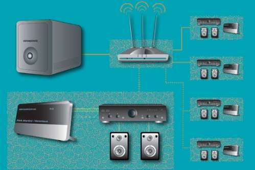 Sterker nog, het gaat in principe over precies dezelfde apparatuur. Je hebt dus een pc, NAS of stand-alone muziekserver nodig als bron, aangevuld met een afspeelapparaat per zone – al dan niet met ingebouwde versterker en luidsprekers. Het enige onderscheid is dan ook dat hier gebruik wordt gemaakt van een draadloze WiFi-verbinding voor het streamen van muziek en het verzenden van bedieningscommando’s.