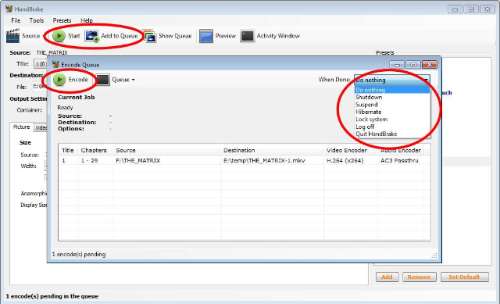 Als alles klaar is, kan Handbrake de computer eventueel afsluiten. Klik daarvoor op de When Done-dropdownbox.