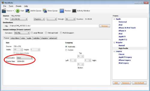 Kan je speler niet overweg met dergelijke bestanden, kies dan None en vink Keep Aspect Ratio aan.