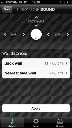 Even verrassend zijn de vele audio-instellingen in de Libratone-app. Je kan daarbij aangeven hoe de Zipp gepositioneerd is (op een tafel of op de grond, bijvoorbeeld), inclusief de situering ten opzichte van tafelranden of muren.