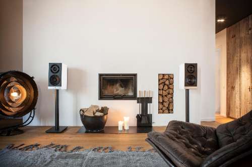 De Stereo M kan je beschouwen als de kleinere broer van deze Stereo L, al spreken we hier wel over een alles behalve compacte set boekenplankspeakers. ‘Klein’ is hier niet op zijn plaats. Niet buiten categorie misschien, maar dan wel ‘catégorie une’. Met afmetingen van 42 x 21 x 27 cm en een gewicht van 10,5 en 11,5 kg, ga je deze speakers niet op eender welke boekplank parkeren. Waarom twee gewichten, vraag je je misschien af? Dat komt omdat één speaker de actieve is, met alle versterking en netwerkonderdelen ingebouwd. De tweede speaker is passief en wordt via een meegeleverde luidsprekerkabel met de actieveling aangesloten. Via de bijhorende app geef je trouwens aan of de actieve speaker het linkse of het rechtse kanaal afspeelt, zodat de plaatsing van het stopcontact nooit een probleem oplevert naar de stereoscheiding toe.
