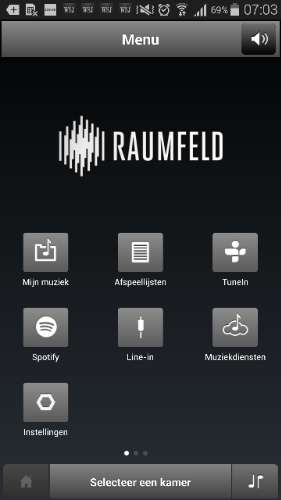De Raumfeld-app bestaat voor iOS en Android, waarbij we heel blij zijn om te merken dat de app op onze iPad en Sony Xperia Z2 Tablet in aangepaste vorm verschijnt. Als je dan toch extra schermoppervlakte hebt, dan is het leuk als app-bouwers er gebruik van maken, toch? Voor zaken als het volume te regelen en kamers beheren is de app op een tablet naar ons gevoel veel handiger in gebruik, en sowieso net iets mooier. De donkere Raumfeld-app is makkelijk in gebruik en brengt je vanaf het hoofdscherm meteen naar alle mogelijke muziekbronnen: eigen afspeellijsten en bestanden, internetradio, muziekdiensten en ook de line-in. Dat het laatste zo prominent wordt uitgespeeld is wel fijn, want de Stereo M beschikt over een analoge ingang waar je bijvoorbeeld een cd-speler op kan aansluiten. Heb je meerdere Raumfeld-kamers, dan kan je via deze weg een cd ook elders in huis laten horen.