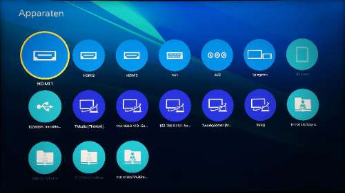 Het nieuwe Home scherm is erg eenvoudig opgebouwd. Drie iconen: Live tv, Apps, en Apparaten. Live Tv brengt je onmiddellijk naar de tv-tuner, Apps naar de geïnstalleerde toepassingen en Apparaten naar alle aangesloten apparaten. Die laatste categorie bevat niet enkel alle ingangen, maar ook aangesloten USB-apparaten, alle DLNA-servers, én alle gedeelde mappen op het netwerk. Veelgebruikte bronnen kan je ‘pinnen’ op het Home scherm. Dat kunnen aparte zenders zijn, apps, of aangesloten apparaten. Bovendien kan je de lijst ordenen, zodat je een aangepast en overzichtelijk startscherm hebt. Helaas verschijnen alle iconen in een lange rij, waardoor je mogelijk wel een eindje moet scrollen. Het leek ons handiger mochten de favorieten per categorie verticaal georganiseerd zijn. Afgezien daarvan is deze interface erg aangenaam én handig. Een pluim voor Panasonic.