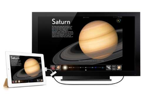 Interessant is de nieuwe Apple Digital AV-adapter waarmee je een iPad 2 via HDMI aan een flatscreentelevisie kunt koppelen. Niet alleen voor filmpjes te bekijken, maar ook om het beginscherm en elke app te spiegelen. Leuk voor games. De adapter werkt overigens ook op oude iPads en zelfs iPhones, maar met enkele beperkingen. Alleen video-apps worden dan naar de tv gestuurd (inclusief webvideo van pakweg YouTube of Vimeo) en het spiegelen van het beginscherm is onmogelijk. De output is ook in 720p, terwijl de nieuwe iPad 1.080p kan leveren.