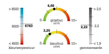 De grijsschaal vertoont eveneens een heel lichte magenta schijn, die we tijdens onze gewone kijk- proeven gelukkig niet echt opmerken. Over de kleurweergave zijn we bijzonder tevreden; die is voor deze categorie uitstekend.