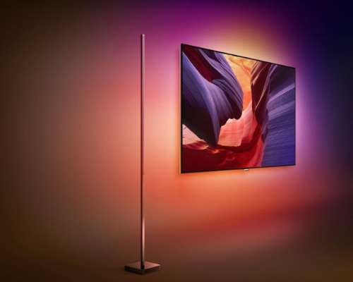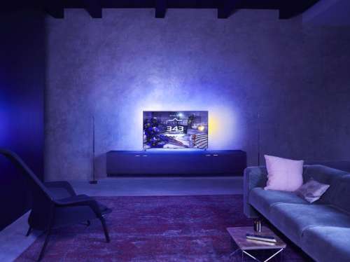 De vierzijdige Ambilight is de troef van deze televisie. Ambilight werkt niet alleen op basis van beeld, maar ook geluid. En tijdens het EK zal je er via een app allerlei extra functies op krijgen. De vierzijdige Ambilight komt natuurlijk het best tot zijn recht aan de muur.