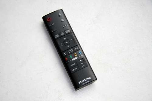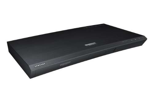 Deze eerste UHD Blu-ray-speler uitpakken bracht alvast een geruststelling, hij is vrij compact. Je hoeft dus niet te vrezen voor een mastodont zoals de eerste Blu-ray-spelers. Samsung koos wel voor een design dat past bij zijn curved tv’s en dus kreeg de speler een gebogen voorzijde mee. De curve is gelukkig niet al te uitgesproken, zodat hij ook bij andere apparatuur past. De tiptoetsen staan rechts bovenaan, op een licht afgeschuind vlak, waardoor ze altijd goed zichtbaar zijn. De voorzijde loopt schuin naar achter. Dat is geen probleem voor de schijflade, maar wel voor de USB-aansluiting vooraan. Als de speler redelijk laag staat, wat meestal toch het geval zal zijn, is die niet zichtbaar en dus moeilijk te vinden. De speler is mooi afgewerkt met een zwart geborsteld oppervlak, maar mist misschien toch wat een premium uitstraling.