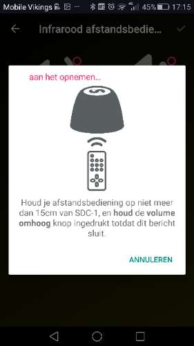 Stap 5: Leer de infrarood commando’s aan. Gewoon het bevel aanklikken, de oude remote richten op de Spin remote en de juiste toets even aantikken. Klaar.