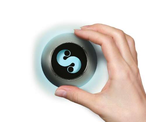 Hoe moet een remote er uit zien? Eenvoudig, dat was alvast een van de sleutelwoorden die de bedenkers van dit kleinood voorop stelden. En vertrouwd ook. Dat resulteerde in een opvallend design. De Spin remote is namelijk een grote draaiknop. Hij is van geborsteld metaal, met het verlichtte Spin remote logo aan de bovenzijde en een oplichtende rand onderaan. De Spin remote ligt aangenaam in je hand, met een stevig maar niet te zwaar gewicht.